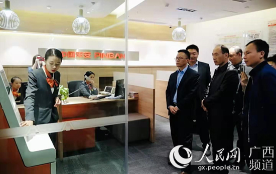 評(píng)審專家組一行參觀核查平安產(chǎn)險(xiǎn)廣西分公司門店(王麗霞/攝)