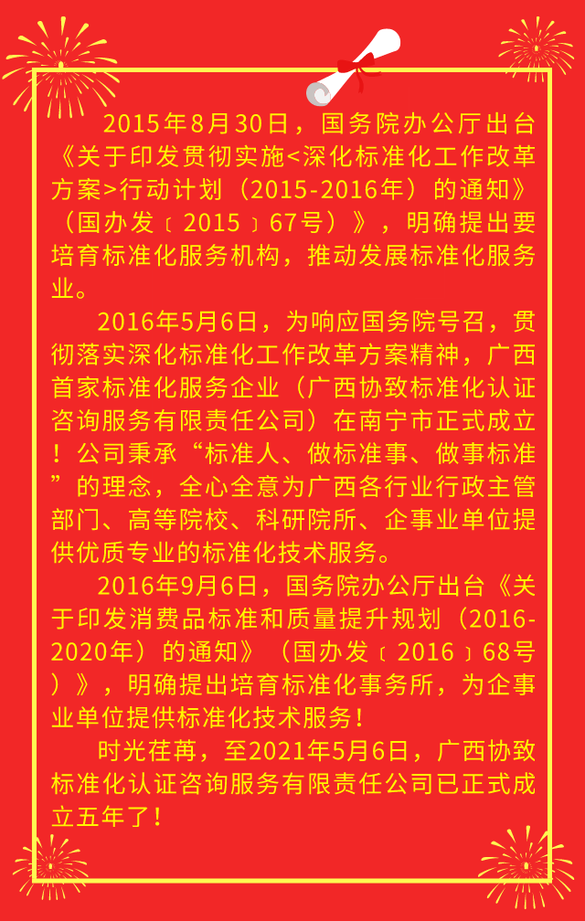 廣西協(xié)致標準化認證咨詢服務有限責任公司五周年寄語:在服務和創(chuàng)新中茁壯成長