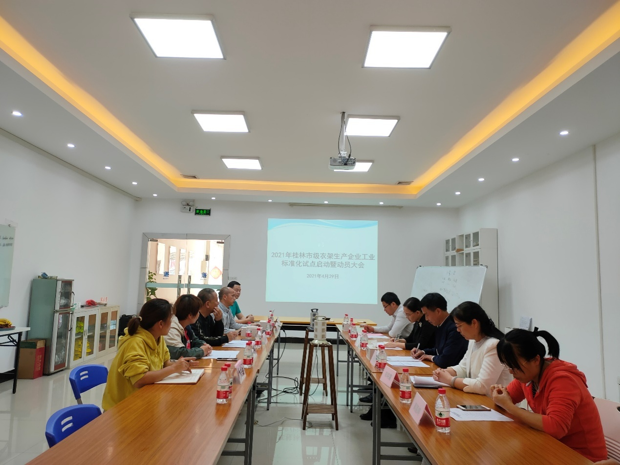 4月29日,為全面部署桂林市衣架生產(chǎn)企業(yè)標(biāo)準(zhǔn)化良好行為試點創(chuàng)建工作,廣西桂林華海家居用品有限公司組織召開2021年桂林市衣架生產(chǎn)企業(yè)標(biāo)準(zhǔn)化良好行為試點啟動暨動員大會。桂林市市場監(jiān)管局標(biāo)準(zhǔn)化科唐慧副科長、蔣曉龍主任科員、荔浦市市場監(jiān)管局質(zhì)量綜合監(jiān)督管理股股長陳明霞、我司總經(jīng)理黃林華、廣西桂林華海家居用品有限公司董事長助理莫祖存、總經(jīng)理助理韋曉康以及各部門主管參加會議。